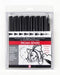 Pigma Sensei drawing sets include the tools you need to illustrate in the Manga or comic style. The 6 piece drawing set includes the necessary basics a pencil, eraser, and quality Pigma ink in a variety of nib sizes for inking and adding dimension. The 8 piece set includes the same pencil and Pigma Sensei nib sizes, but also includes 3 chisel nib inking pens for sharp lines and filling in large spaces. Use fine lines for facial expressions, lettering, and detailing, or bold lines to add impact and drama. The pencil's fixed sleeve protects the sturdy 0.7 mm lead from breaking whether sketching or using templates. The universal appeal of Pigma ink makes this kit a value for any Illustrator.